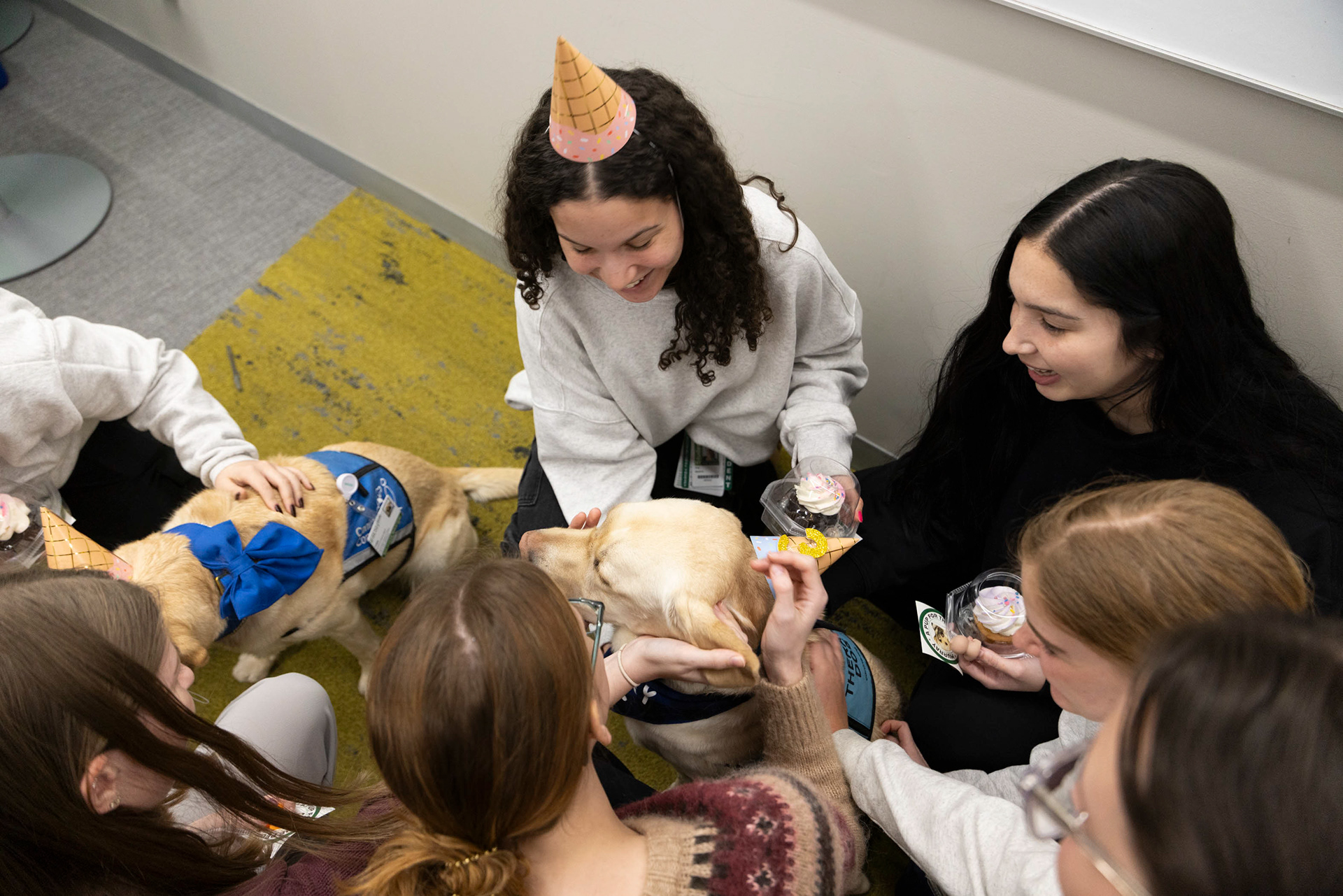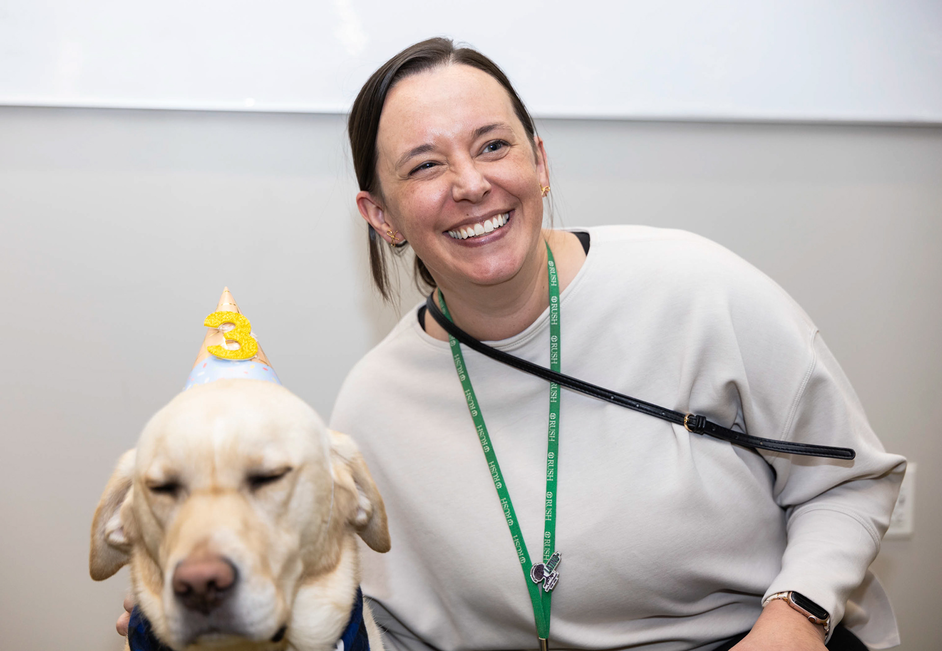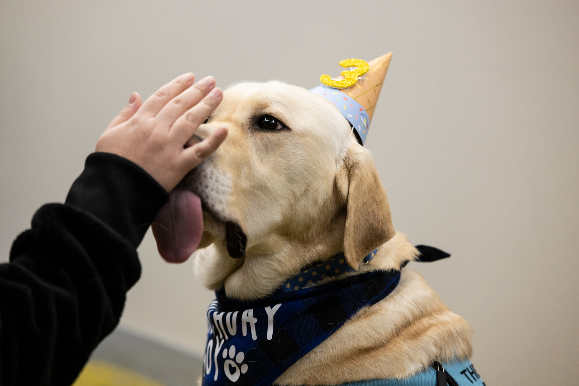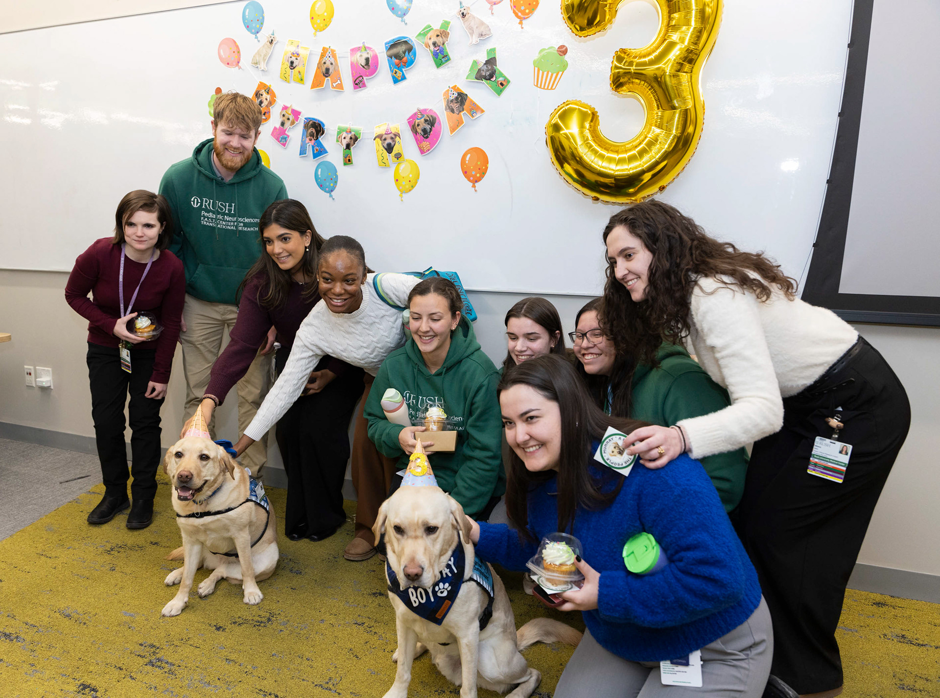 rush faculty and students celebrate Murray the therapy dog's 3rd birthday.