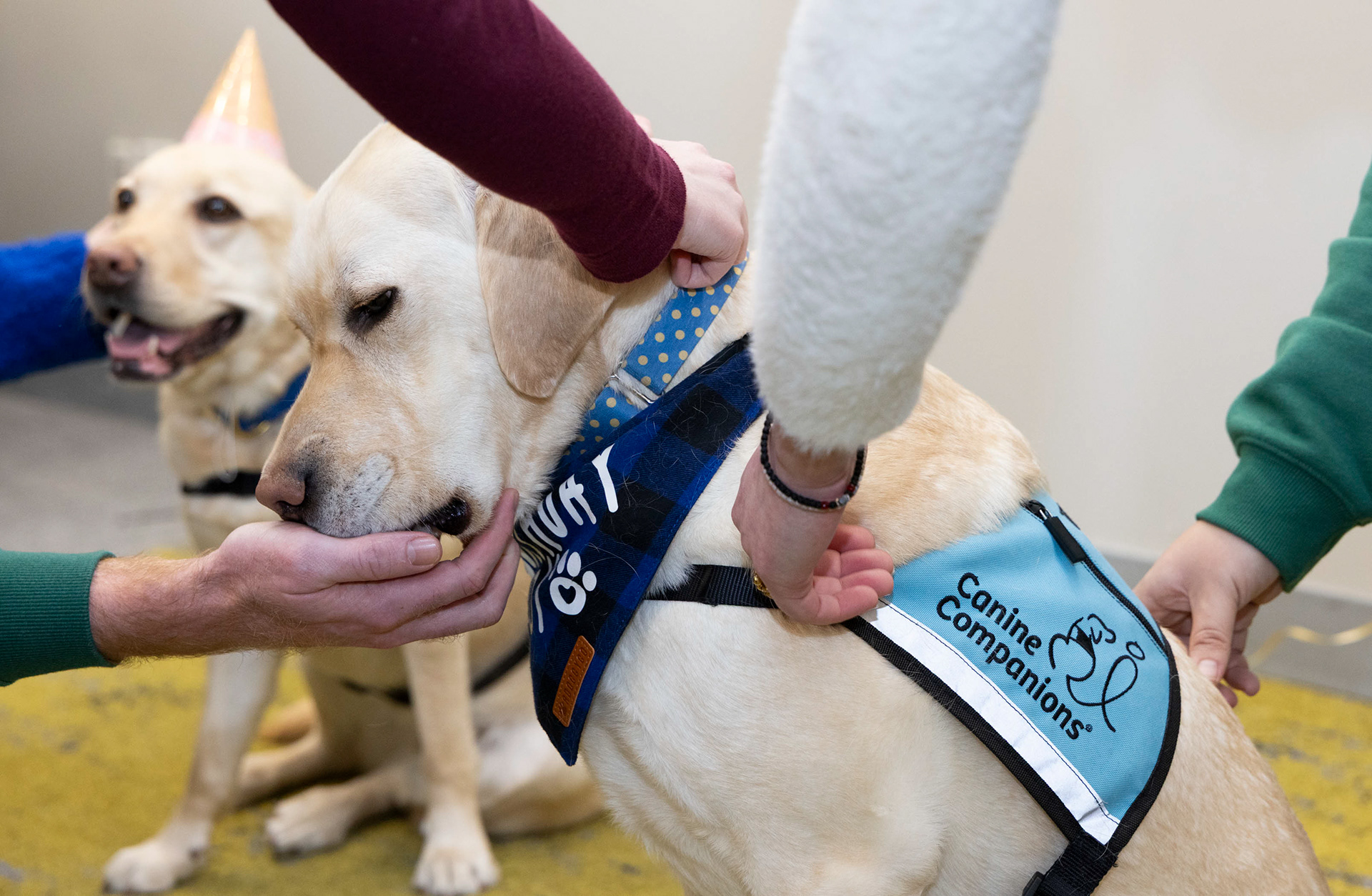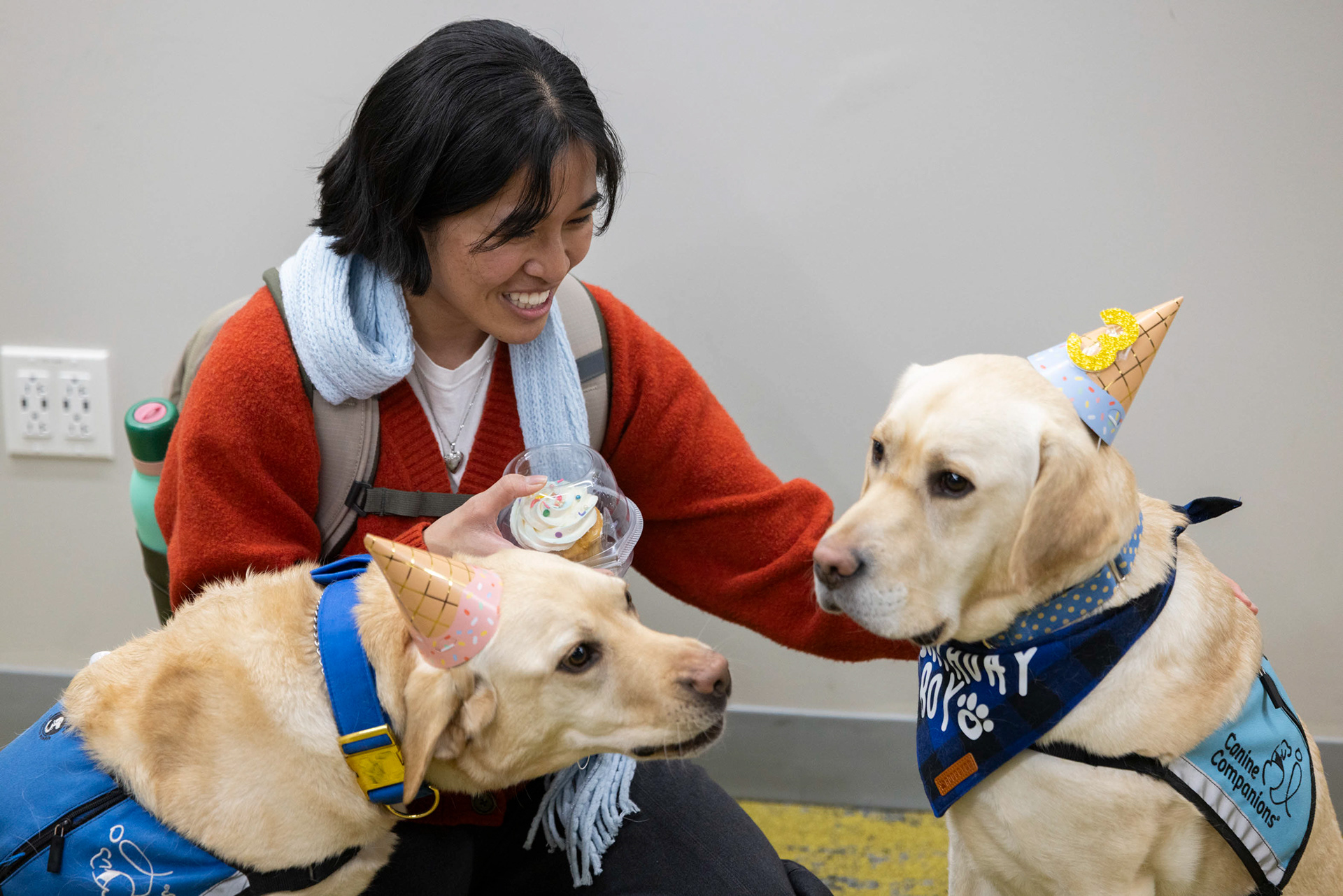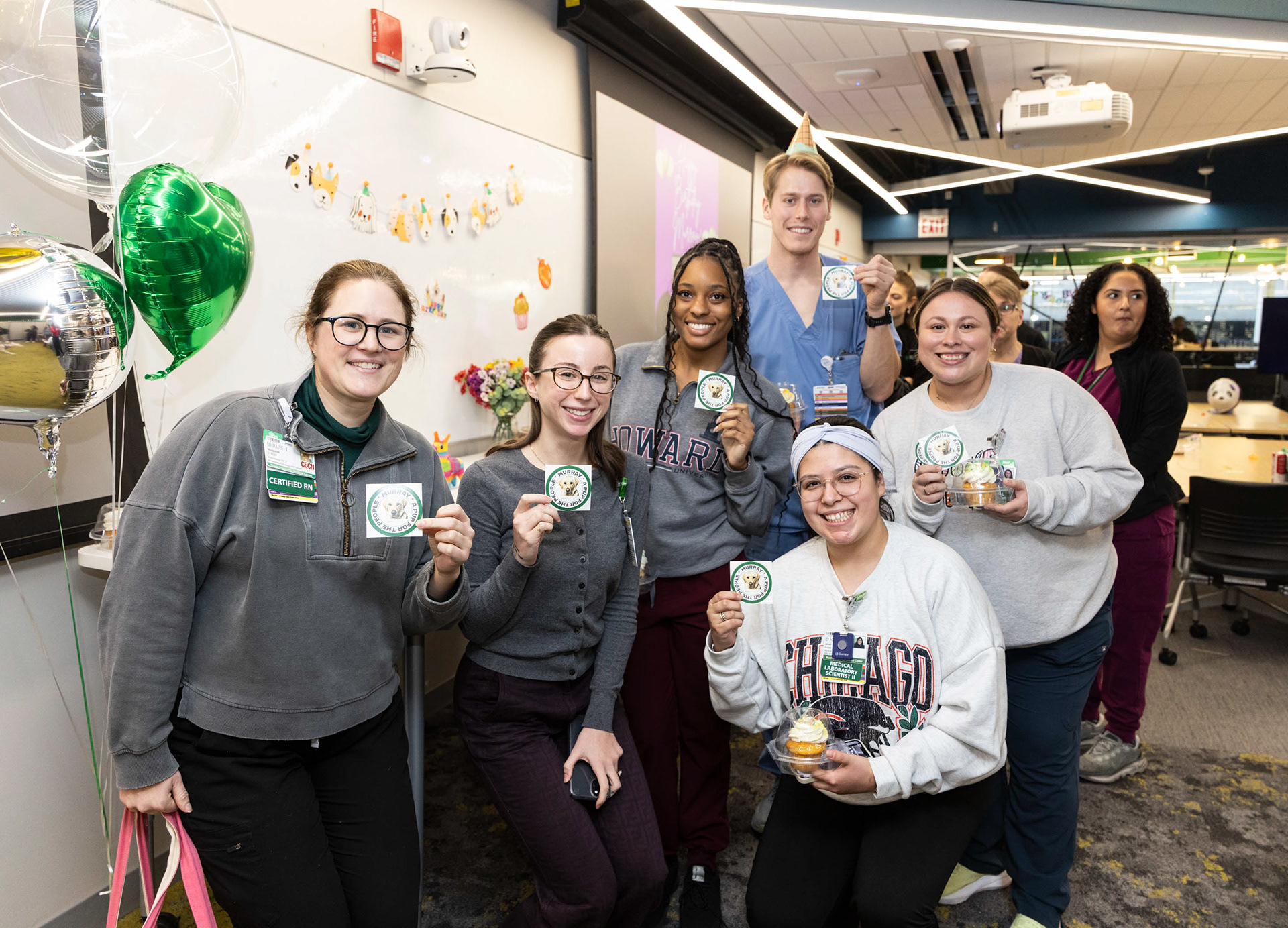 rush faculty and students celebrate Murray the therapy dog's 3rd birthday.