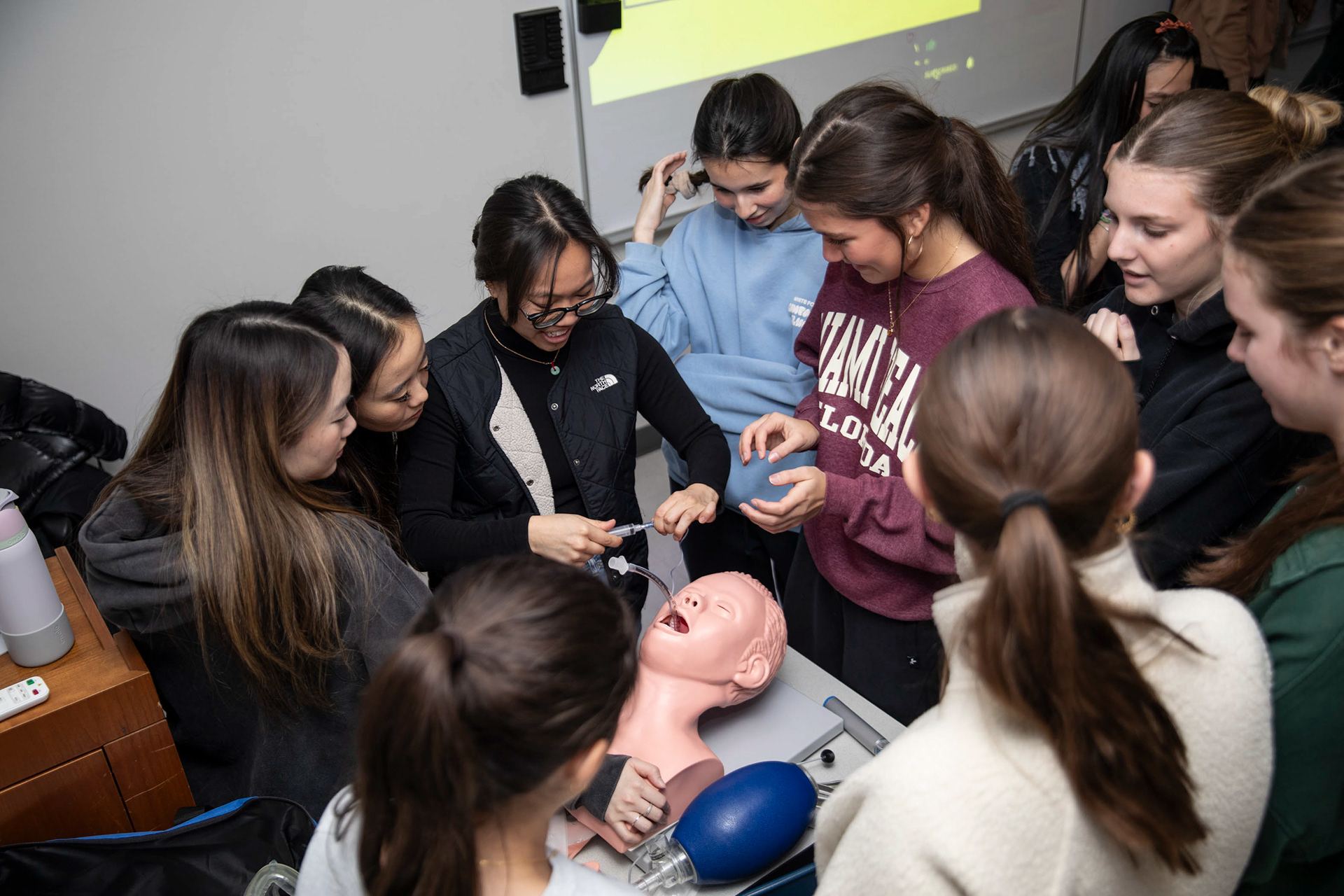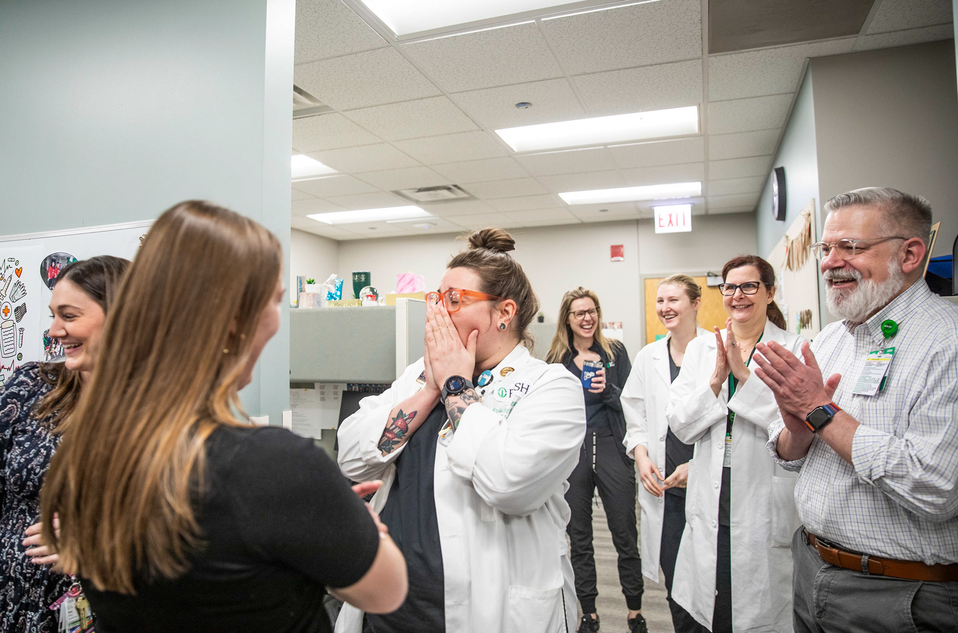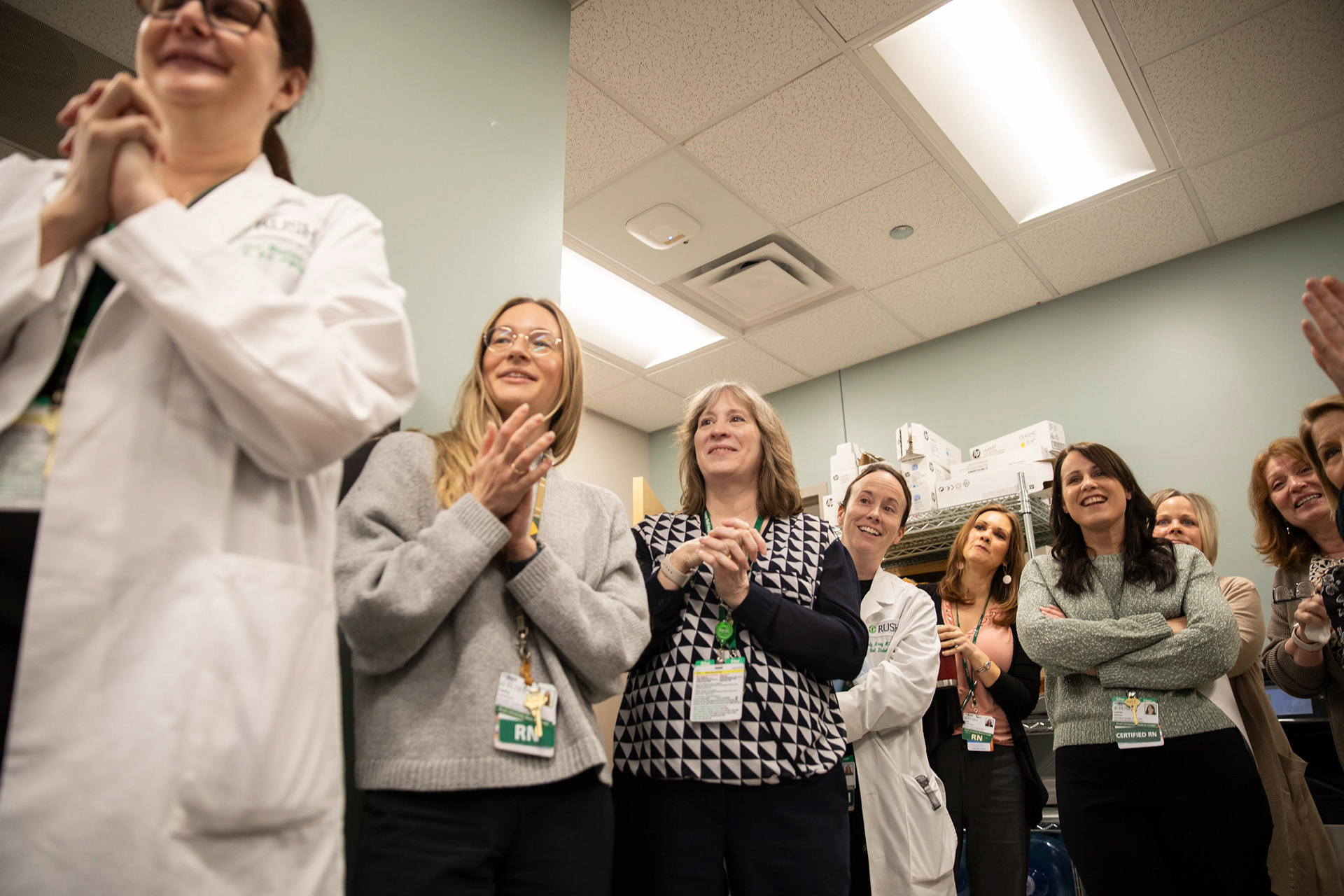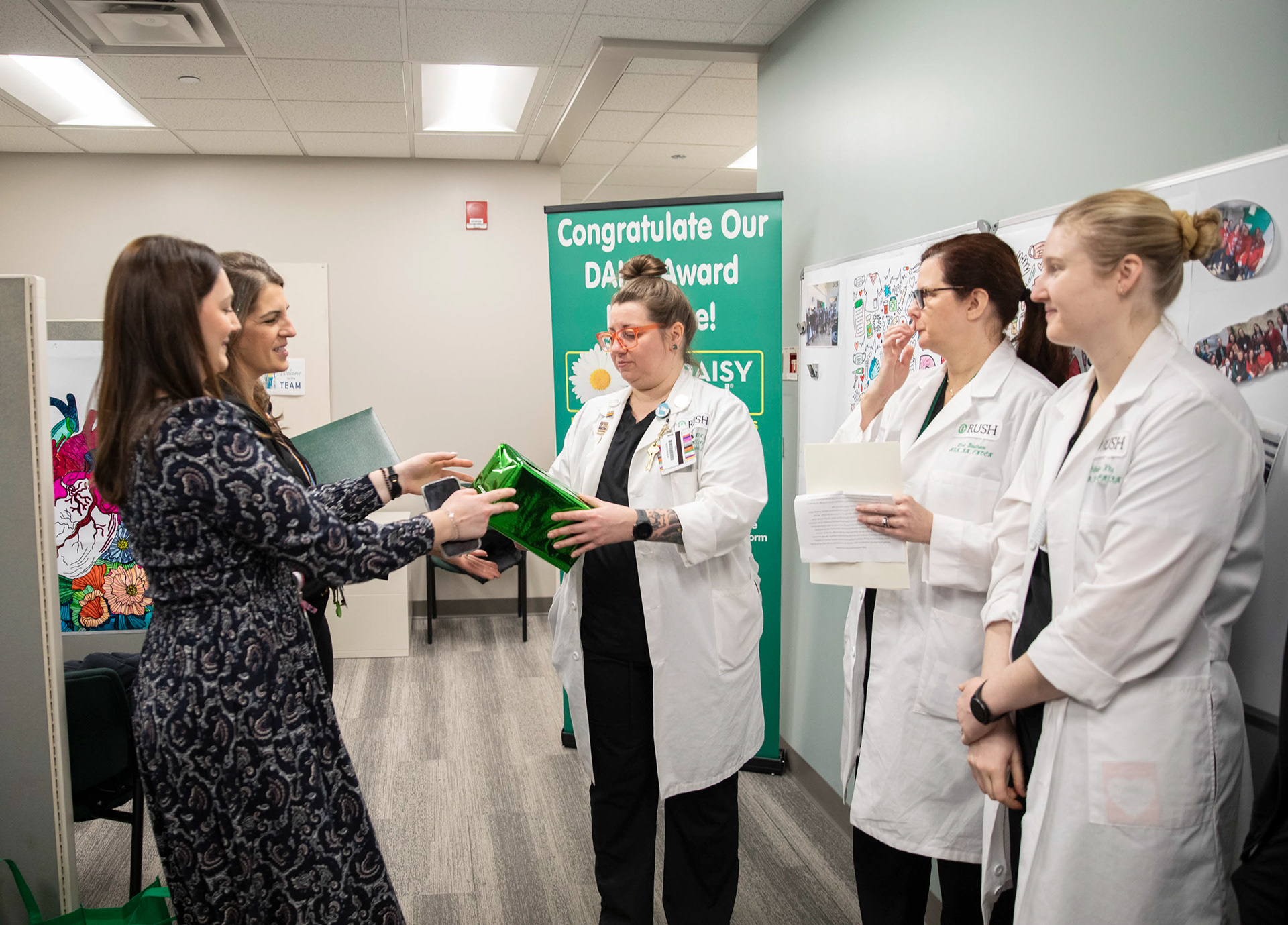 rush faculty and students celebrate Murray the therapy dog's 3rd birthday.